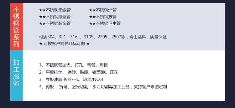 無錫泉林專業(yè)銷售不銹鋼管、不銹鋼板、不銹鋼焊管、不銹鋼卷板、不銹鋼工業(yè)管等產(chǎn)品;批發(fā)價格,質(zhì)量保證!常用材質(zhì):201、304、316、316L、310S等。不銹鋼管廣泛應(yīng)用于五金、機(jī)械、電器、電子、模具、化工、能源輕紡、石油化工、海洋運(yùn)輸、制藥造紙、食品工業(yè)、電力船舶、機(jī)床設(shè)備等領(lǐng)域。